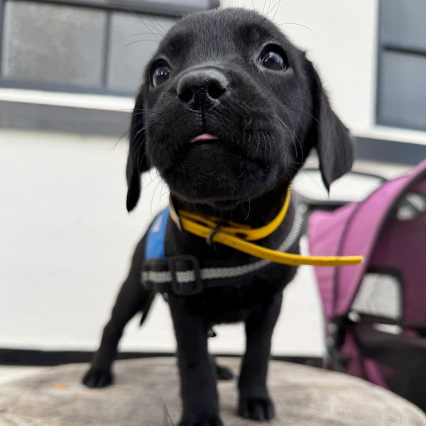 Hero is a Labrador/Newfoundland cross that was born from our breeding program. He spent the first year and a half in our service dog training program with different puppy raisers and trainers. He is an incredibly sweet, confident dog that loves to work. Since we did not have an applicant that specifically met Hero's needs and temperament well, we decided to place him as a public access trained started service dog with an owner-trainer in Southern California.