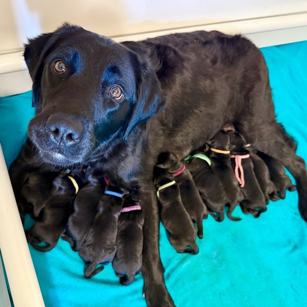 On February 15th, 2025 Florence gave birth to 11 healthy pups! We are excited to see where these puppies end up in their service dog journey!